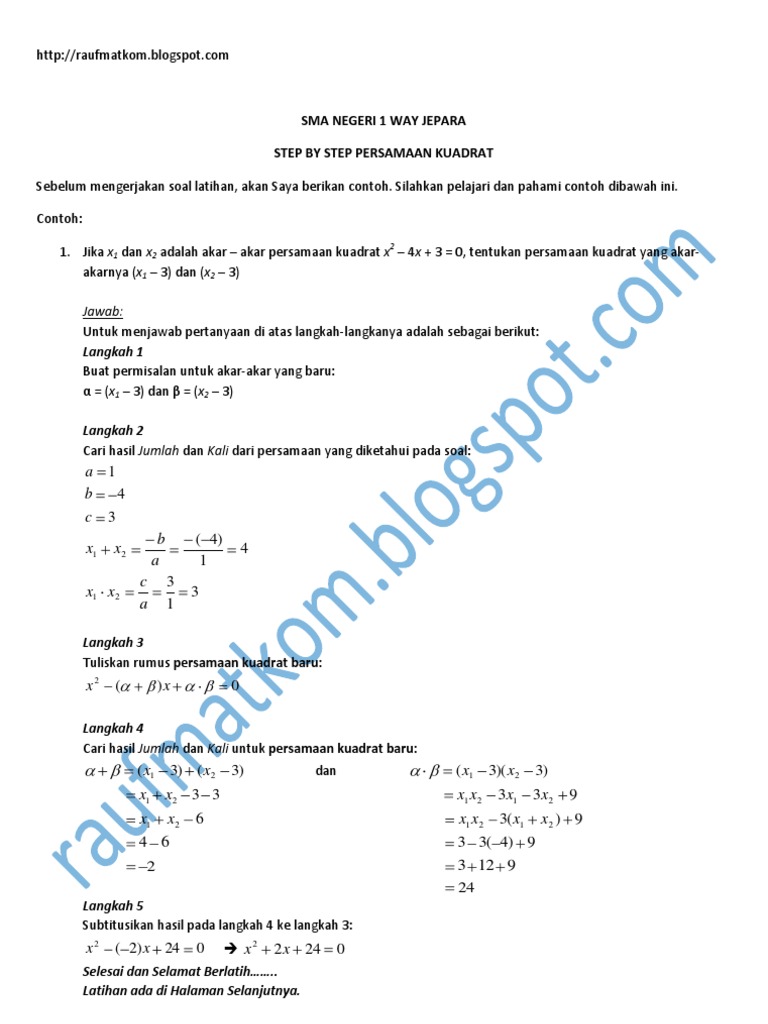 Persamaan Kuadrat Pdf from imgv2-1-f.scribdassets.com Maybe you would like to learn more about one of these? Cara mencari nilai x1 dan x2 dalam persamaan kuadrat. We did not find results for: Check spelling or type a new query.
