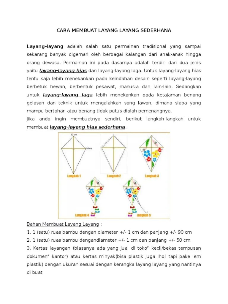Cara membuat layangan unik uniklayangan unik dan mudahkumpulan. Letakkan ikatan bambu di atas kertas koran. Perhatikan contoh teks prosedur berikut! Ini merupakan saat paling baik untuk bermain layangan dikarenakan angin berhembus . Siapkan ruas bambu dengan ukuran 1 cm dengan panjang 90 cm.